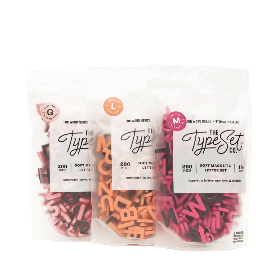 Stay wild, Summer child. Show your free spirit when you decorate with this boho bundle. Includes three sets of magnetic letters in coral, magenta, and rose.