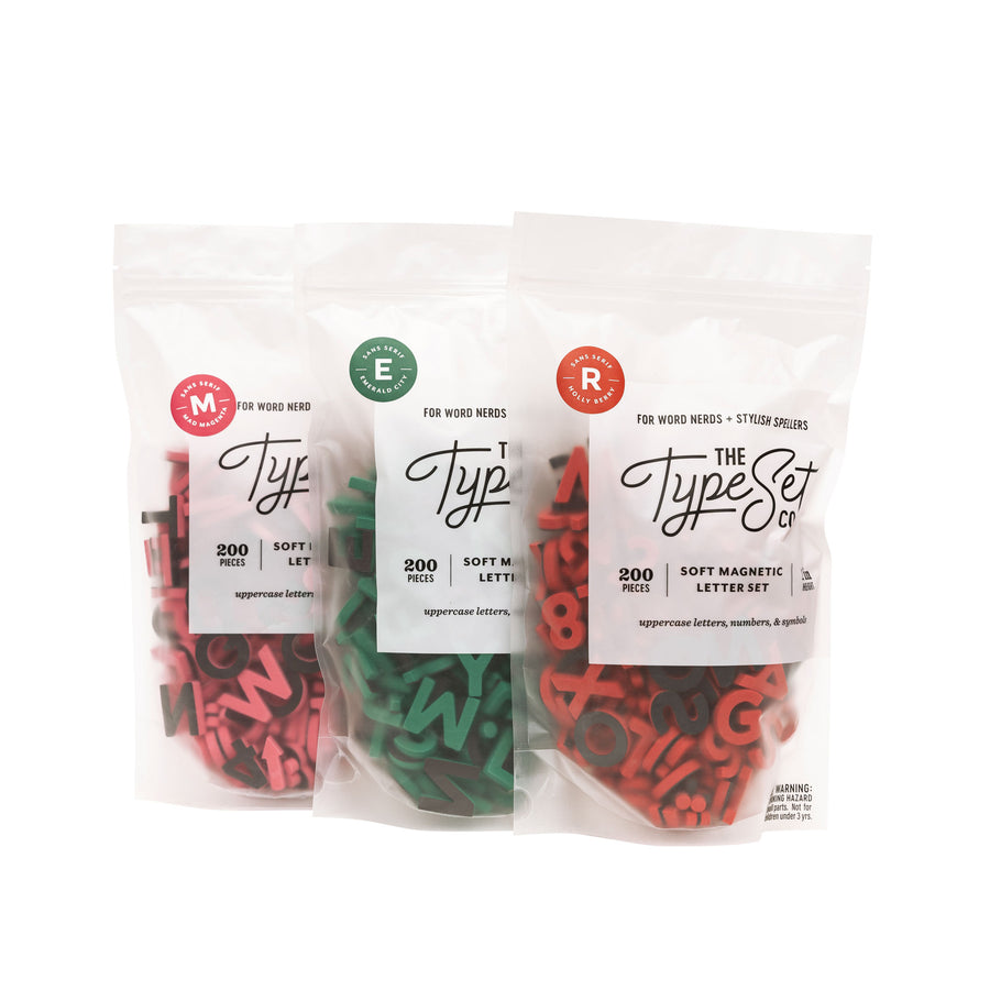Add sugar, spice, and everything nice to your holiday season with this bundle. Includes three sets of magnetic letters in magenta, holly, and emerald.