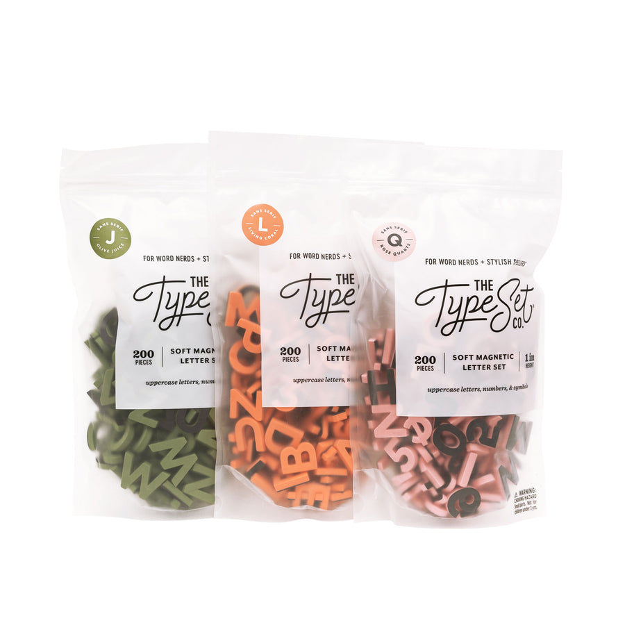 Gather your favorite Spring blooms… in magnetic letter form! Includes three sets of magnetic letters in coral, rose, and olive.