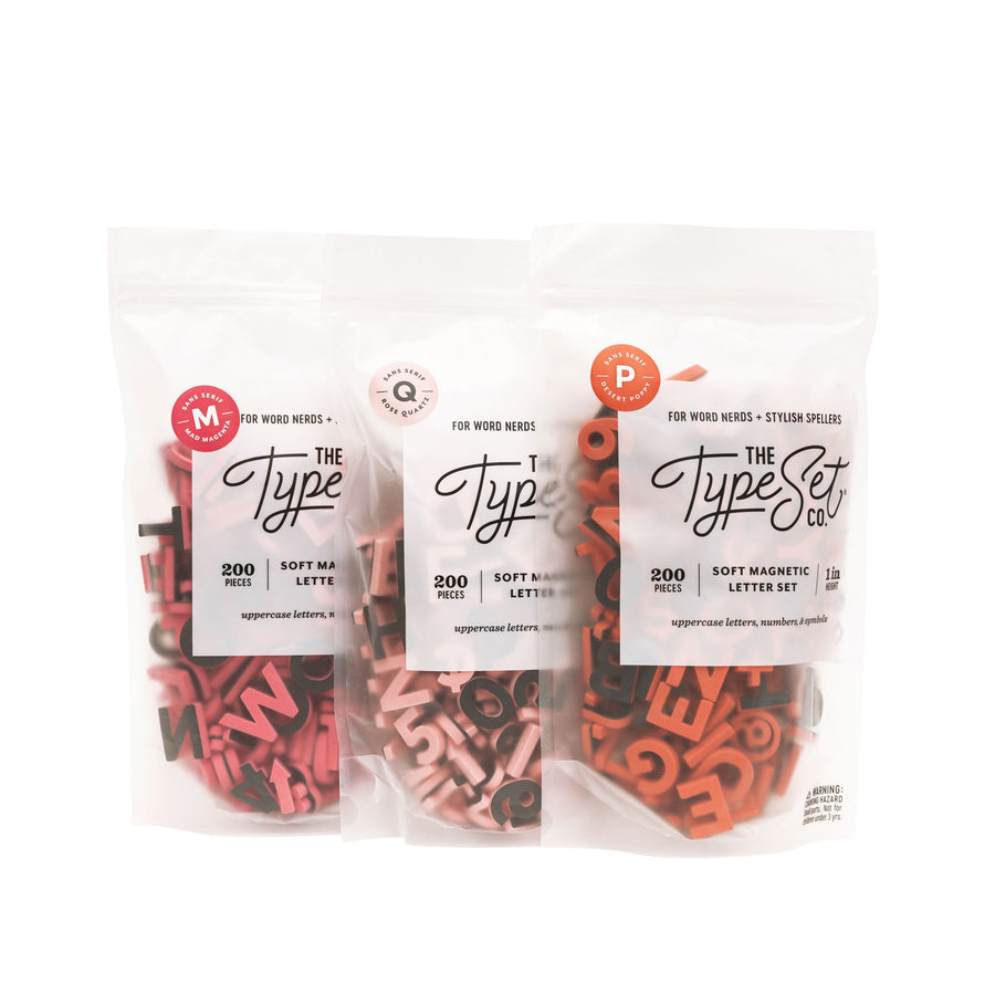 Get ready for sparks to fly when you spell your favorite love quotes and phrases with this bundle. Includes three sets of magnetic lettrs in rose, magenta, and poppy red.