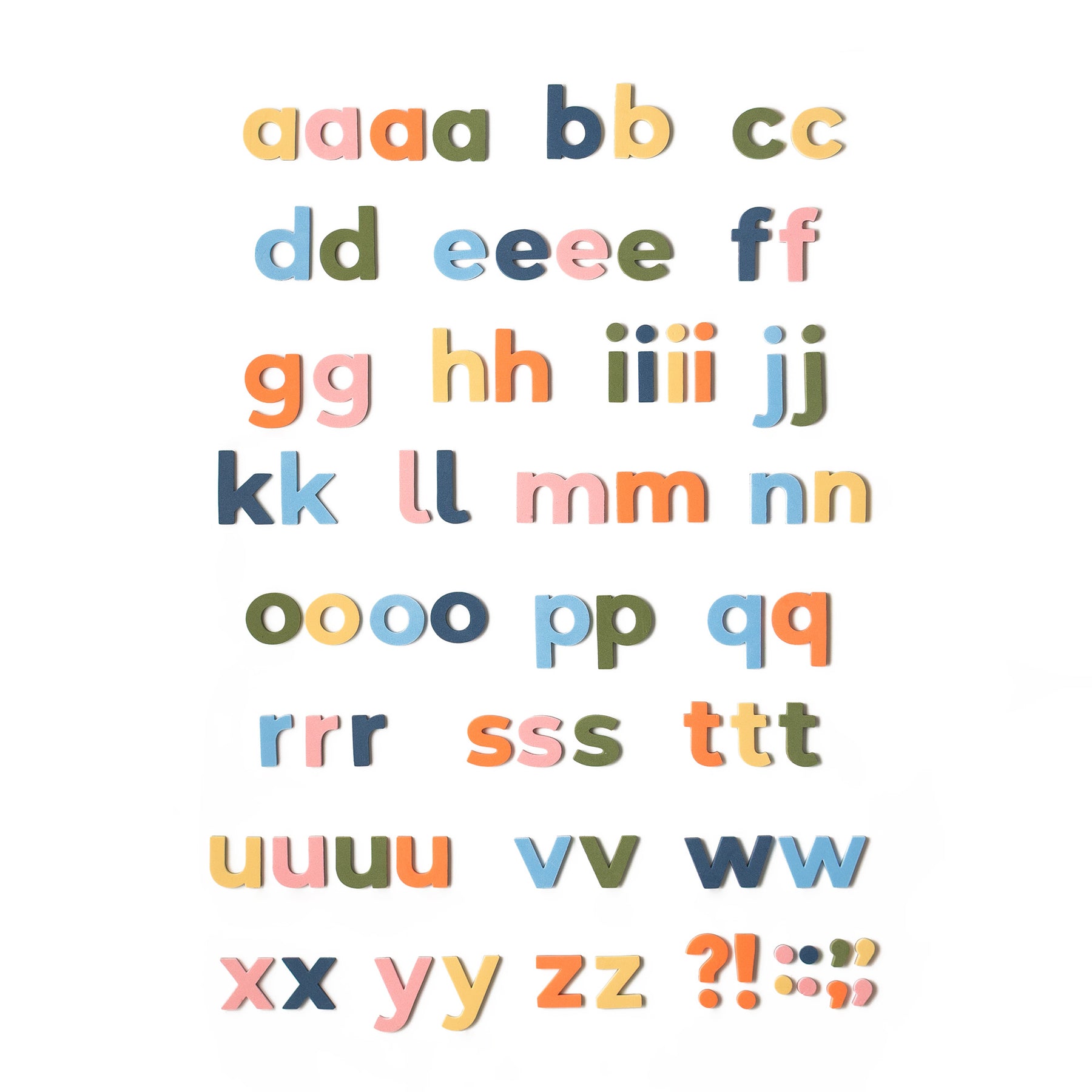 Perfect for pairing with our 2" 36-piece Uppercase & Number Set, this lowercase set encourages hands-on, screen-free learning at home or in the classroom.