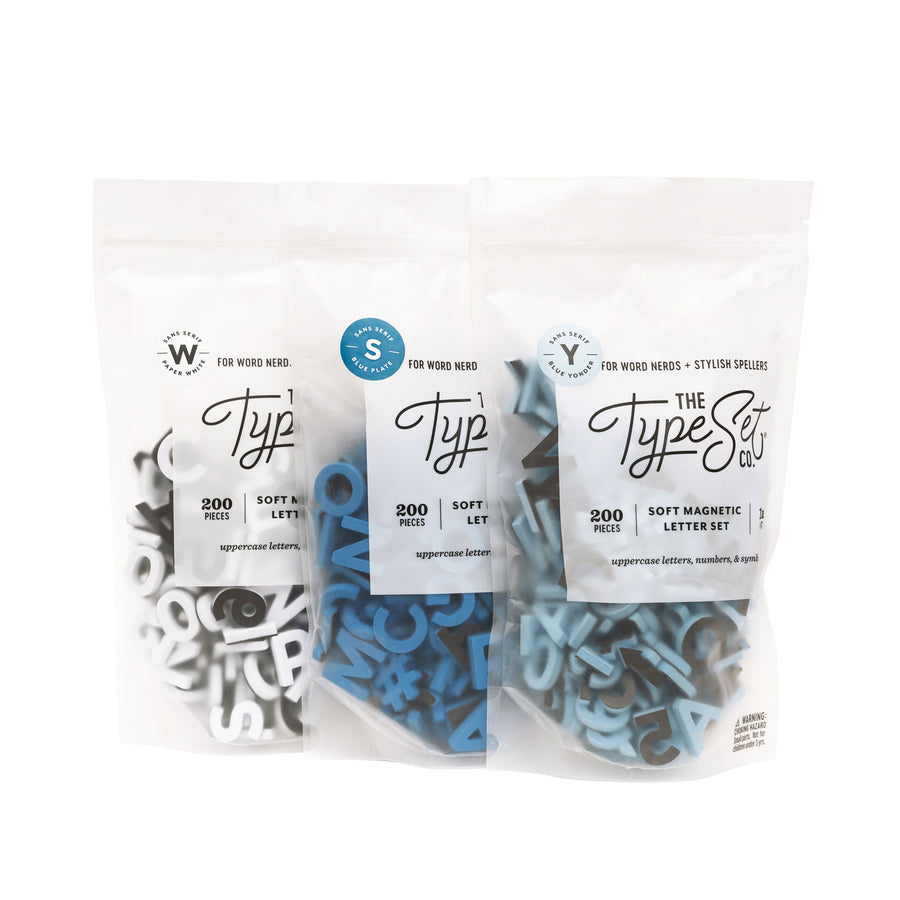 Get ready for Santa to come to town with this snowy bundle. Includes three sets of magnetic letters in blue, light blue, and white.